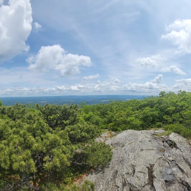 Mount Everett is the highest peak in the Southern Region of the Taconic Mountains, and its prominent domed shape is easy to spot. It's rocky summit area, fully exposed to the harsh New England weather, can only support a stunted grove of pitch pines and scrub oak. Consequently, views are excellent above this fragile, dwarf forest. The Appalachian Trail climbs over Mount Everett from the north and south, and side trails provide additional access from the mountain's eastern and western slopes. It's neighbor peak, Mountain Race, has a phenomenal ridgeline, and the additional views are worth a side trip.
