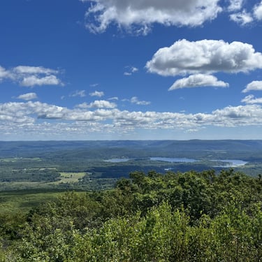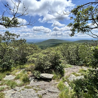 Alander Mountain offers stunning views of the Harlem Valley and area South Taconic peaks from its grassy, open summit. The mountain straddles the New York-Massachusetts border and can be climbed from both states. An extensive trail network connects neighboring parks and allows for hikes of many lengths, including side trips to other Taconic 12ers. It is a popular spot for backcountry camping, with well-appointed primitive sites and an old fire lookout cabin near the summit.