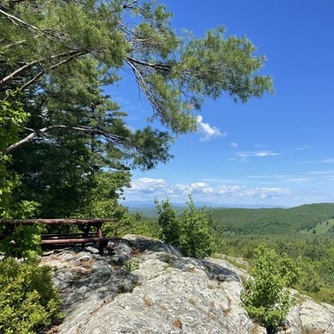 Zion Hill (also Mount Zion Major) is a mini-mountain in the low, rolling hills of the Northern Taconic Mountains. It resides in Vermont's newest, and perhaps most unique, state park. The land was bequeathed to the state under a trust by the filmmaker Carson Davidson in 2016, and it includes several miles of scenic trails, rolling meadows, and a picturesque Japanese garden. A hike of Zion Hill is short, but strenuous and requires some scrambling. A picnic bench at the overlook makes for a wonderful stop. For more views, add in the Mount Zion Minor and Moot Point vistas to your hike. Leave time to relax in the garden and meander the wildflower meadow paths.