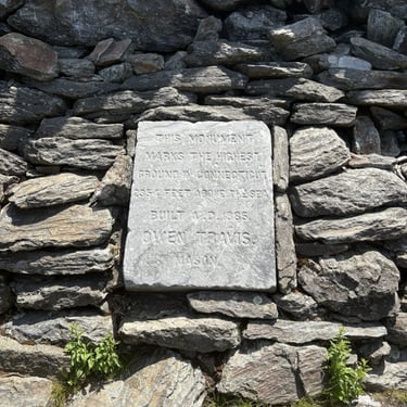 Mount Frissell straddles the Massachusetts and Connecticut border. Its summit sits on the MA side, and where its south slope crosses the state line is the highest natural point in CT at 2,380 ft. The NY-MA-CT tri-state point marker is nearby. While the actual summit of Frissell is wooded, there are excellent views from its southern slope just a short walk away. Its eastern neighbor, Round Mountain, has great views and is typically climbed en route to Frissell. Brace Mountain to the West, another 12er peak, is also a scenic add-on to a Frissell outing.